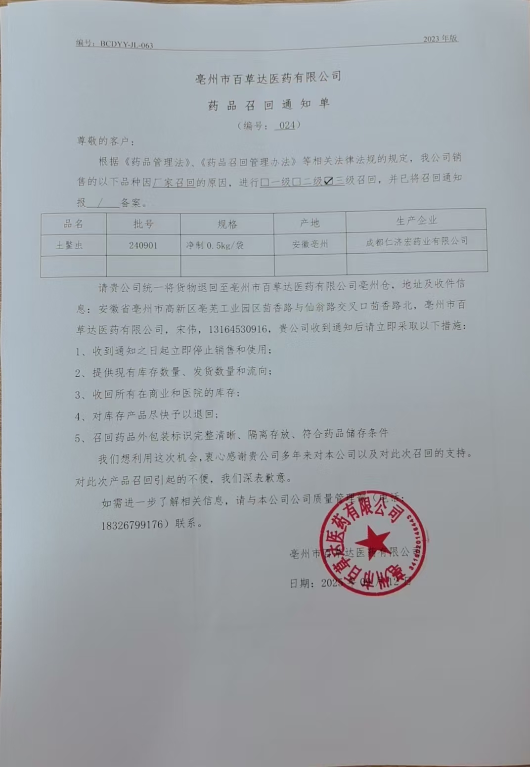 ?2021 亳州市百草達醫(yī)藥有限公司